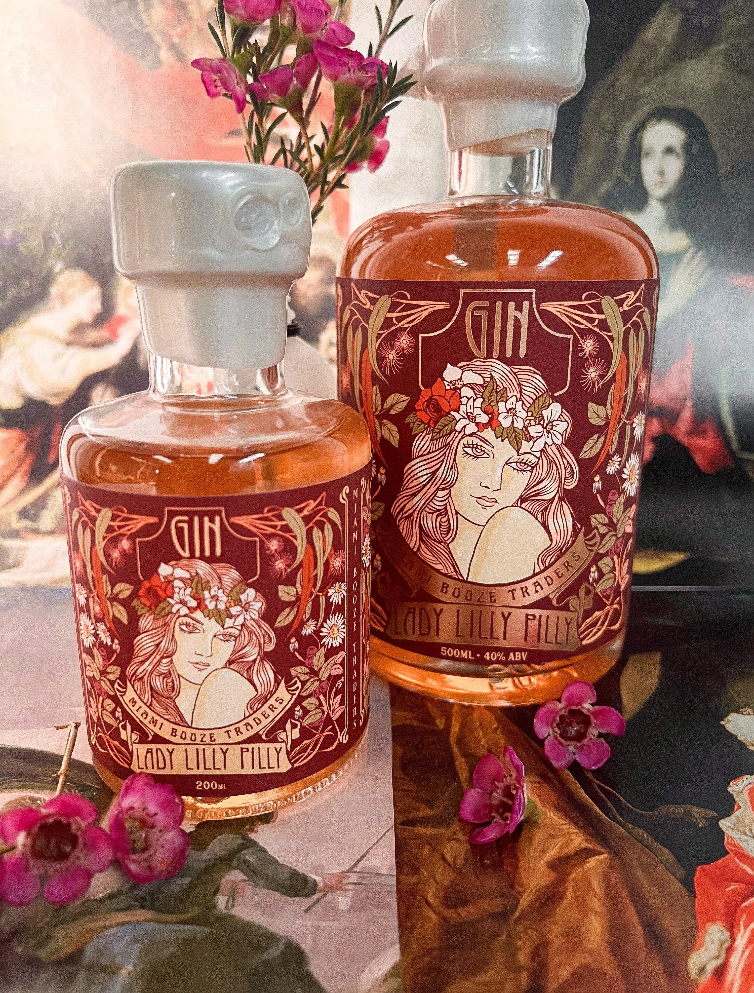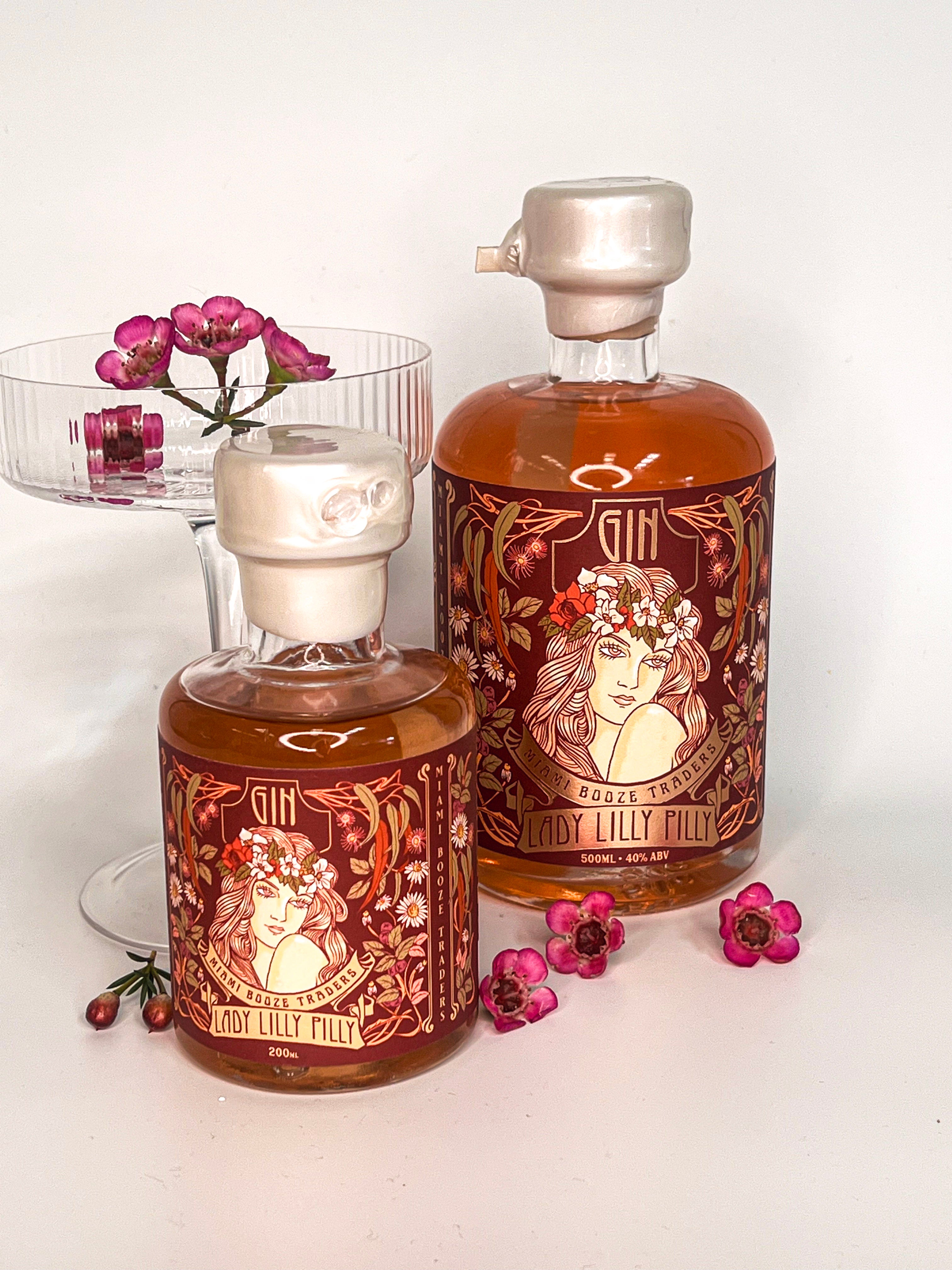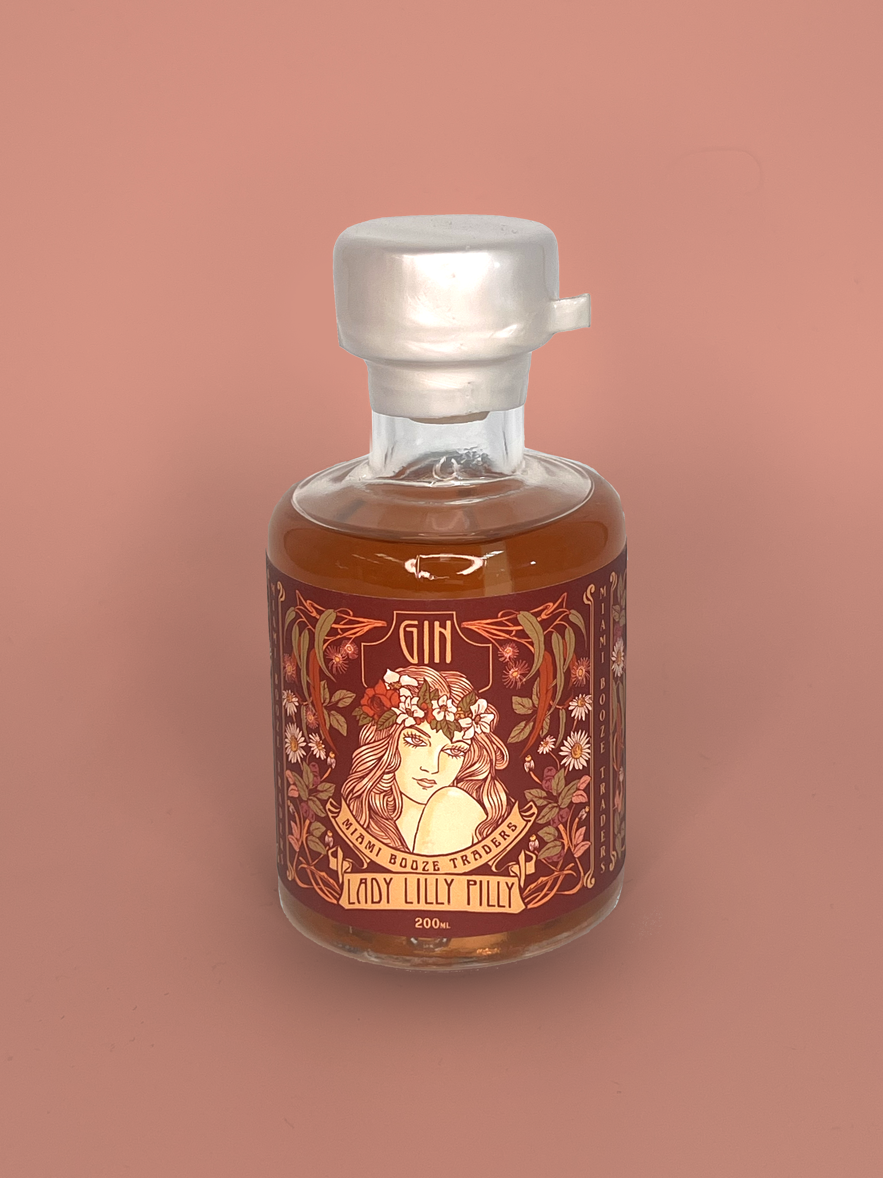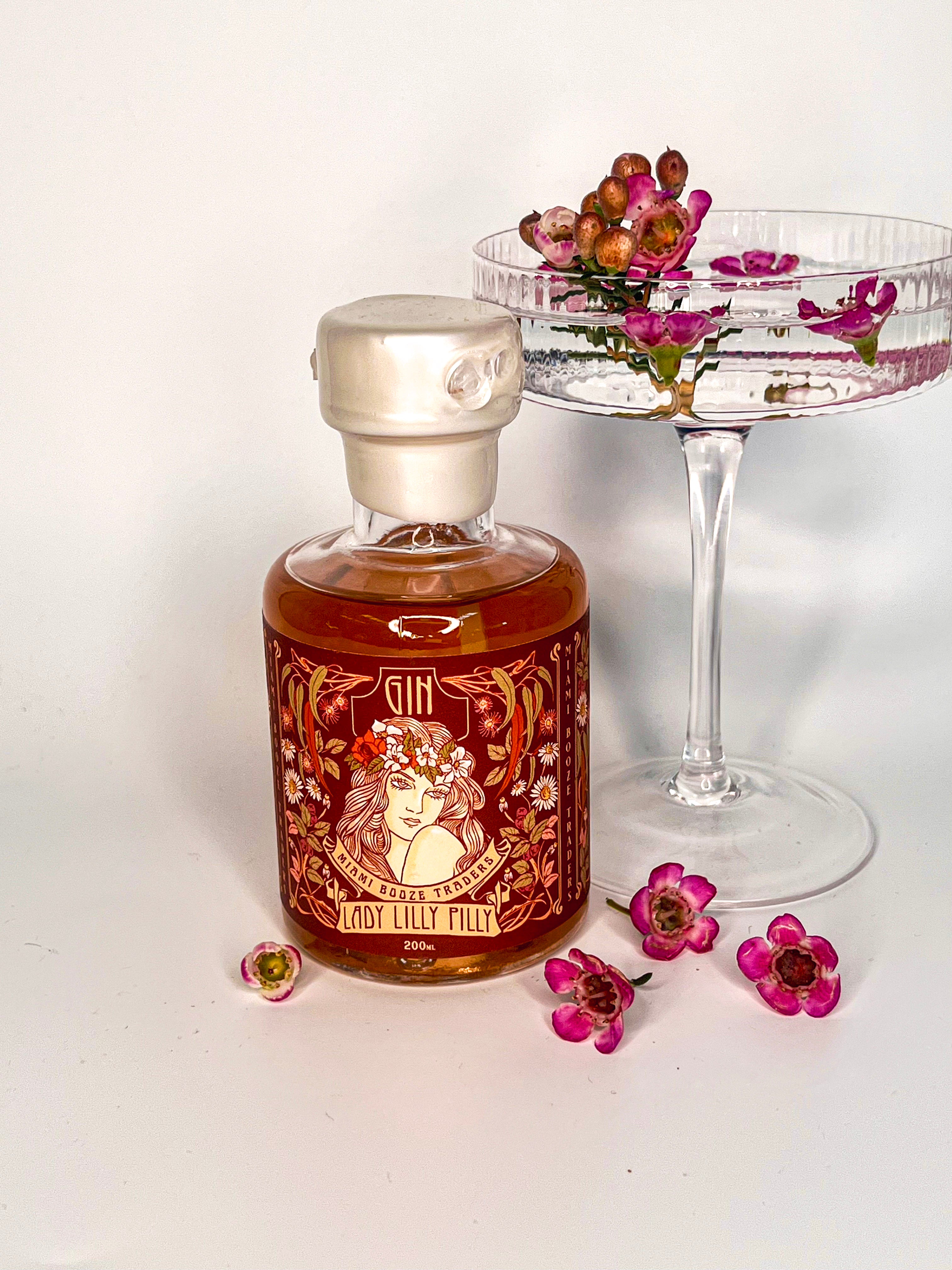 200ml  Lady Lilly Pilly Gin ~ floral, delicate and blushing in pink.